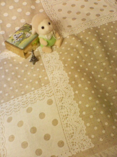 一番の問題は、布と一緒に撮った豆ひつじちゃんの顔がこわい事だと思います。