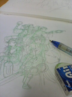 すでに第一ラフを無視しまくった絵が出来上がりつつあります。